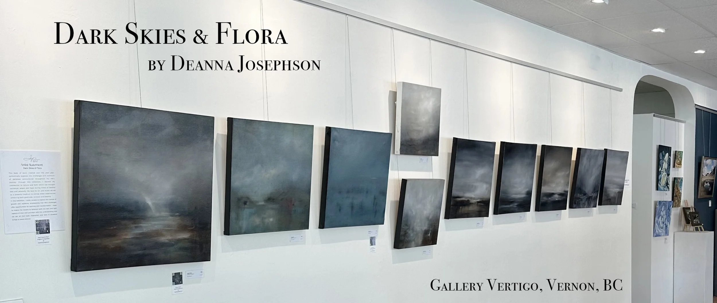 In May 2025, I presented my solo exhibition Dark Skies & Flora at Gallery Vertigo in Vernon, British Columbia. The show brought together my oil paintings and my flora-blend photography — two bodies of work that, for me, were always part of the same emotional conversation.
